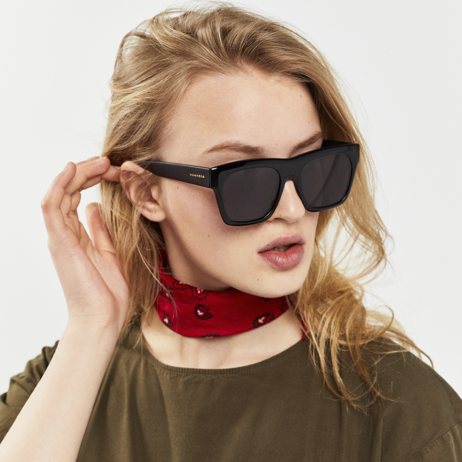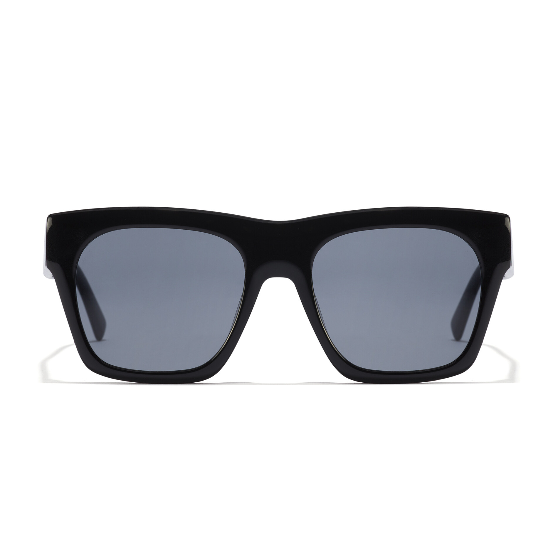 A classic all-black, squared sunglasses design in high sheen finish with slightly oversized rims, which also sport a rounded bevelled edge to soften the lines. The frame is made of prestigious, long-life Mazzucchelli cellulose acetate.