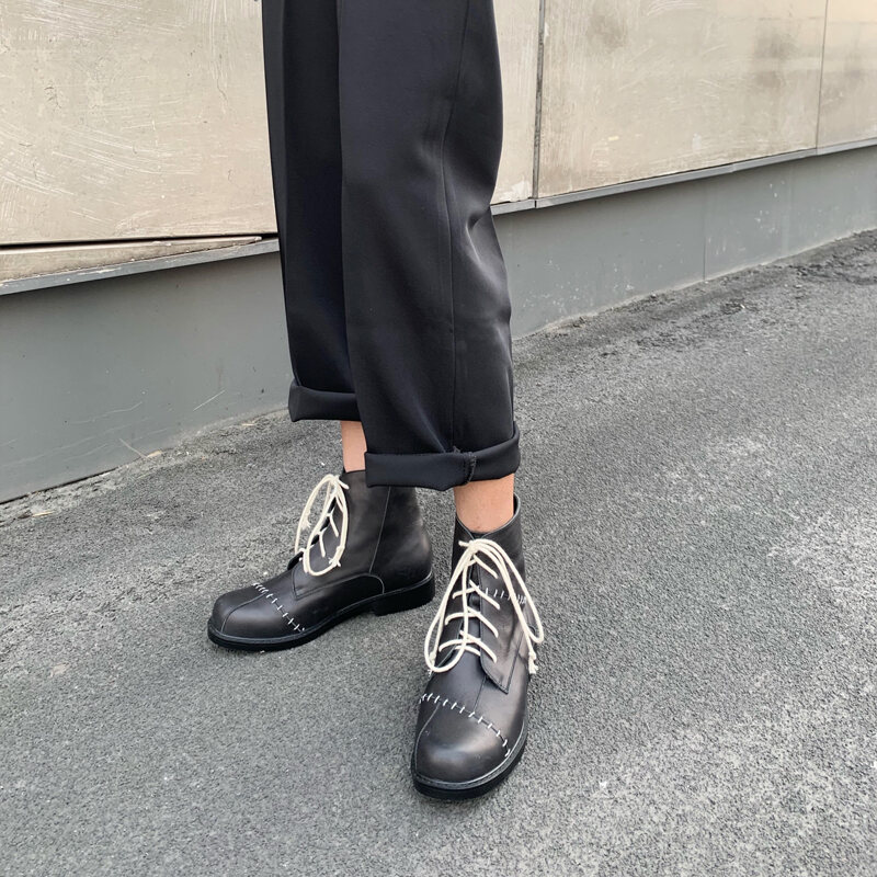 Cut Light Black Working Wear Dr. Martens Boots Women's Spring and Autumn Boots Designer Genuine Leather Flat Bottom England Style Retro Lace up Short Boots Tide