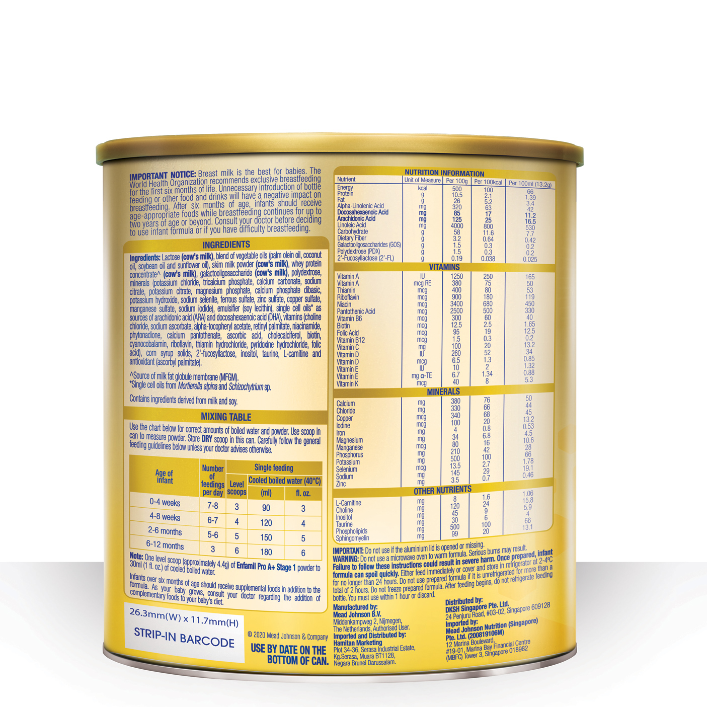 • With over 100 years experience in paediatric nutrition, Mead Johnson Nutrition has designed Enfamil A+ Stage 1. this is a patented formula in US, Europe, Malaysia, Singapore and Hong Kong.