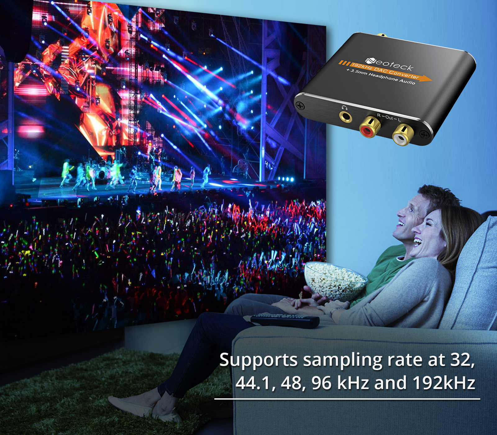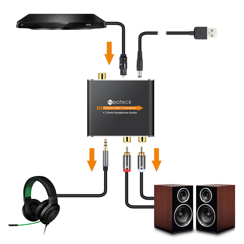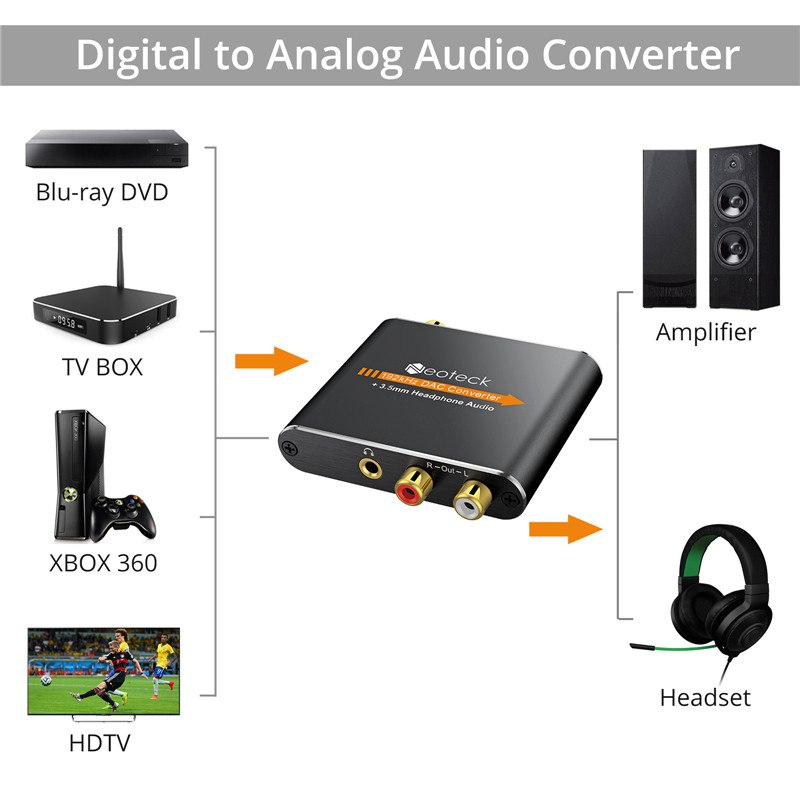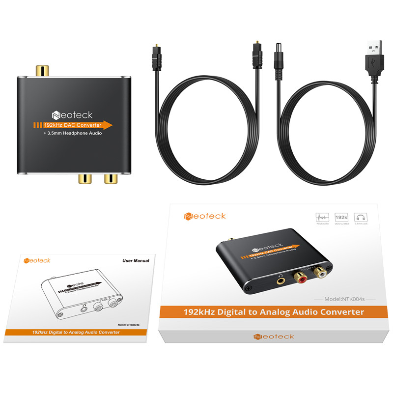 Neoteck 192kHz Digital to Analog Analogue Audio Converter Coax Coaxial Optical Toslink RCA R/L
