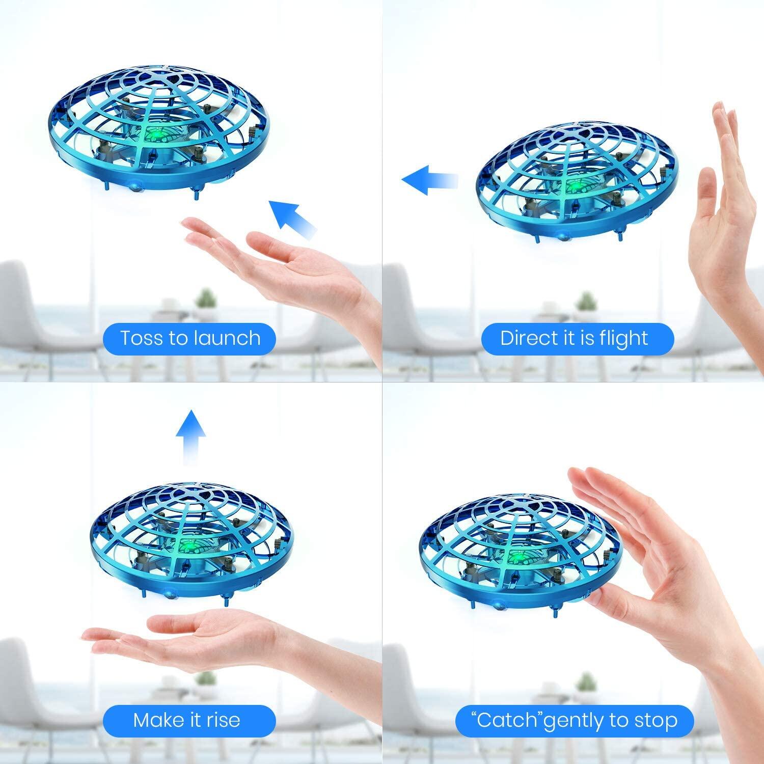 Cute Stone DEERC Mini 360°Rotating Smart Auto Sensing Hovering UFO Flying Toy Drones Hand Gesture Control Motion Sensor Helicopter With LED Light USB Charge Flying Ball Toys for Boys and Girls