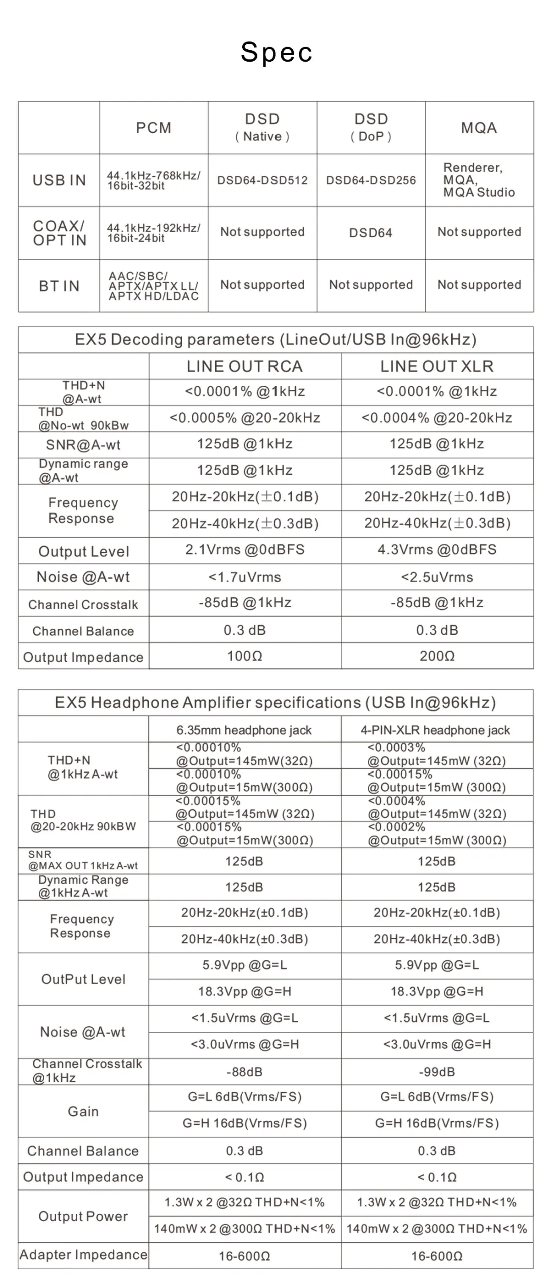 Supported sampling ratesUSB: PCM up to 32bit 768kHz, Native DSD up to DSD512, DSD DoP up to DSD256, MQA