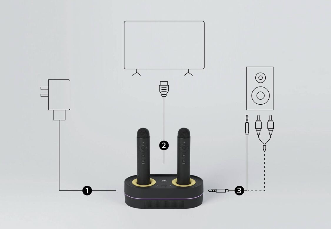 The Popsical Remix II comes with 2 rechargeable microphones and a hub - It is a next generation karaoke system that lets you control from your smartphone or tablet. The content of your choice can be played straight from your TV or you can choose to connect your own speakers.