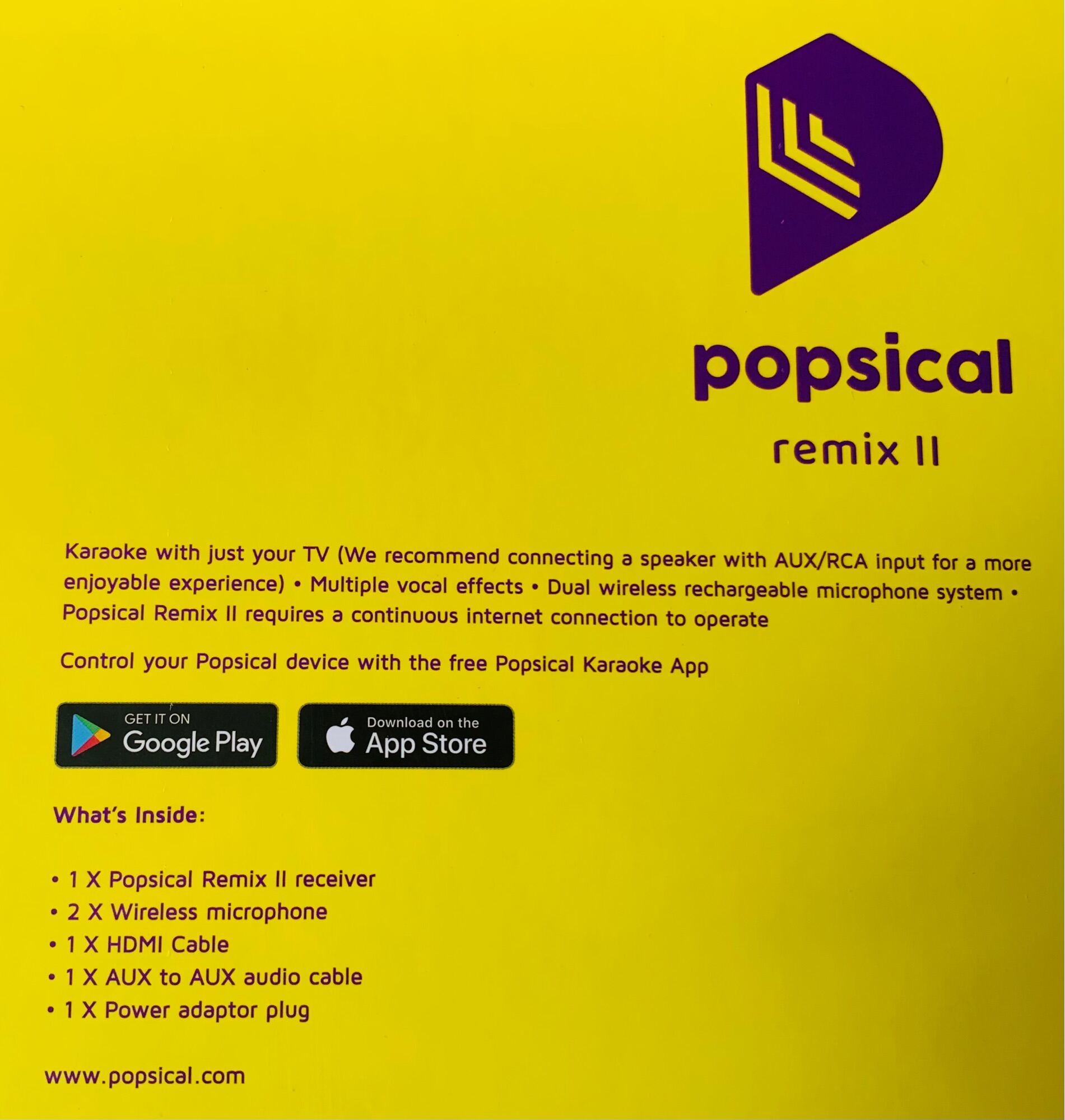 Popsical Remix 2 (All-in-1) c/w 2 microphones and hub receiver (1 Year Local Warranty) - Free 1month subscription, HDMI & AUX Cables, Free Carrying Bag worth $49