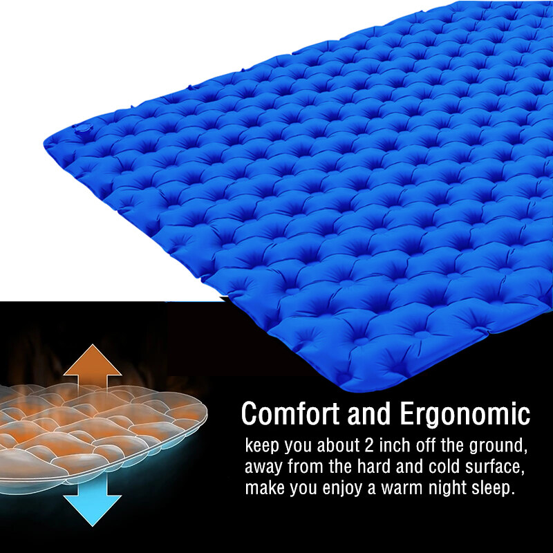 Comfort and no leak is the priority,with air-support cells design to limit air movement and heat loss.The cubed surface design fits the body's natural curves,whether you sleep on this on your back,sides or stomach,you can always feel comfortable. The specially designed Two Way Valve prevent the air leak,so there's no worry about get up and inflate it in the middle of the night, just have a good sleep.
