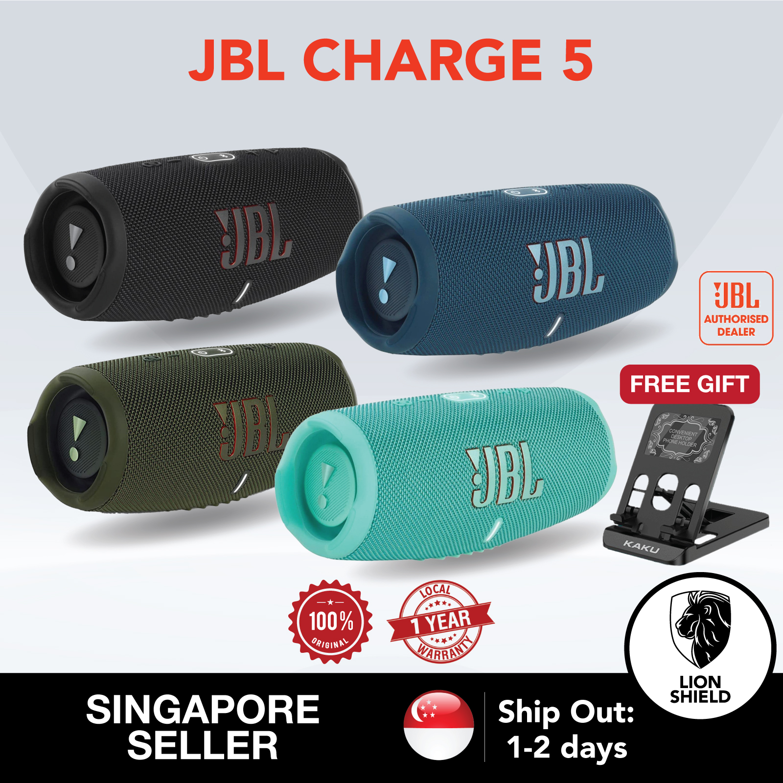 [SG] JBL Charge 5 Portable Wireless Bluetooth Speaker (Waterproof and Dustproof)