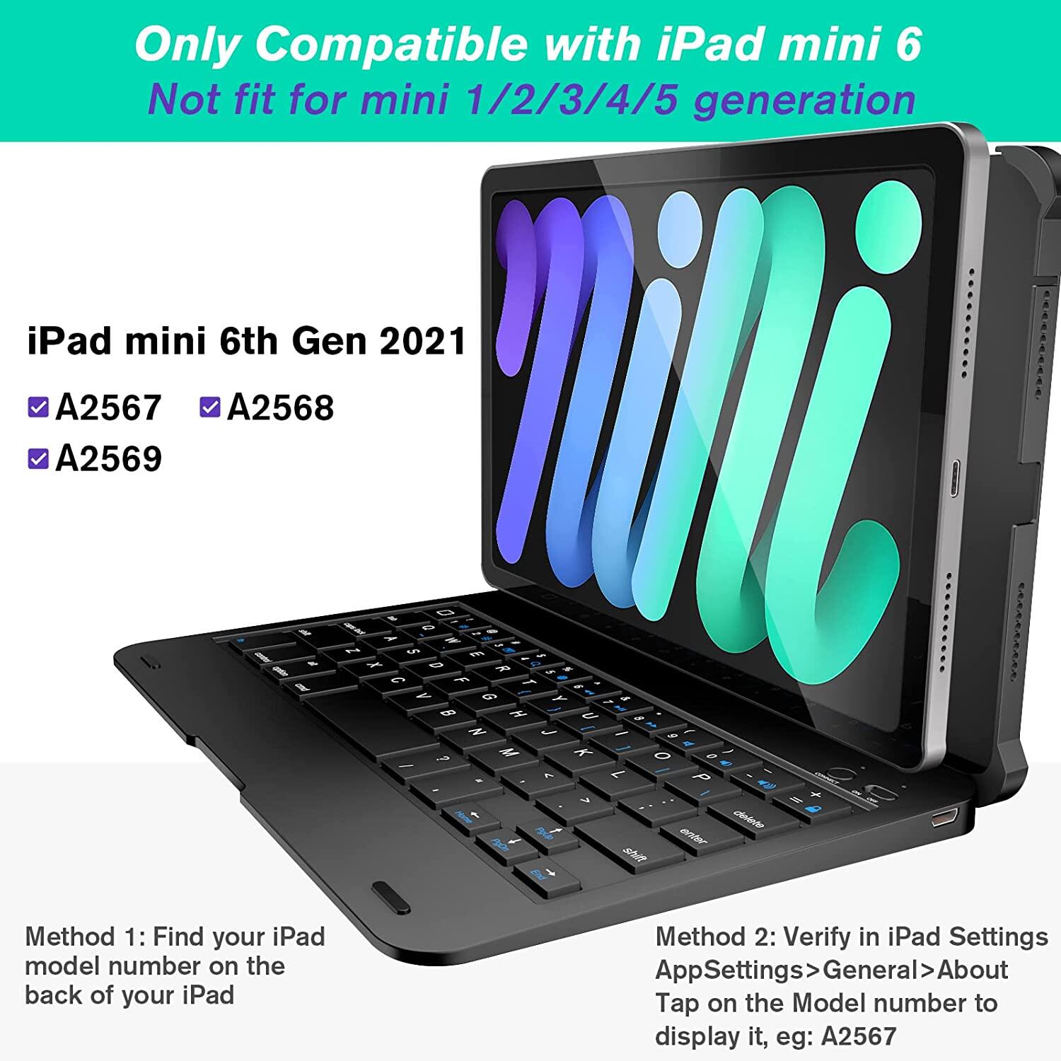 Wireless Bluetooth iPad Keyboard Case for iPad Mini 6th Gen 2021 8.3 Inch iPad mini 5 4 with Auto Sleep/Wake Keyboard