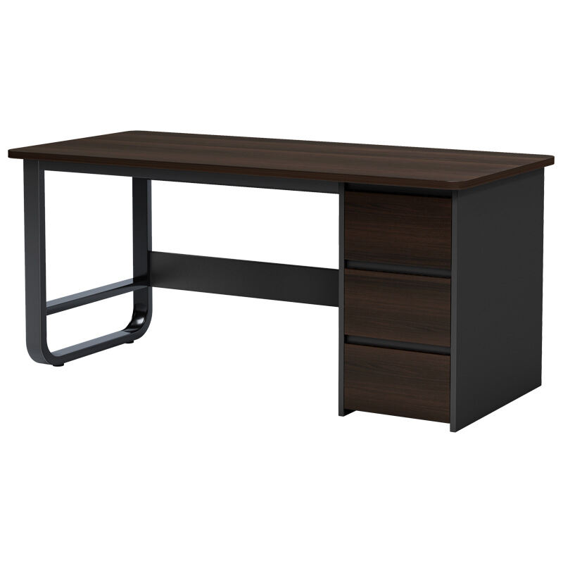 63 Inch Home Office Computer Two-Color Panel Desk with Storage Bag and Hook, Black, Sandalwood Color, Industrial Modern Laptop Desk