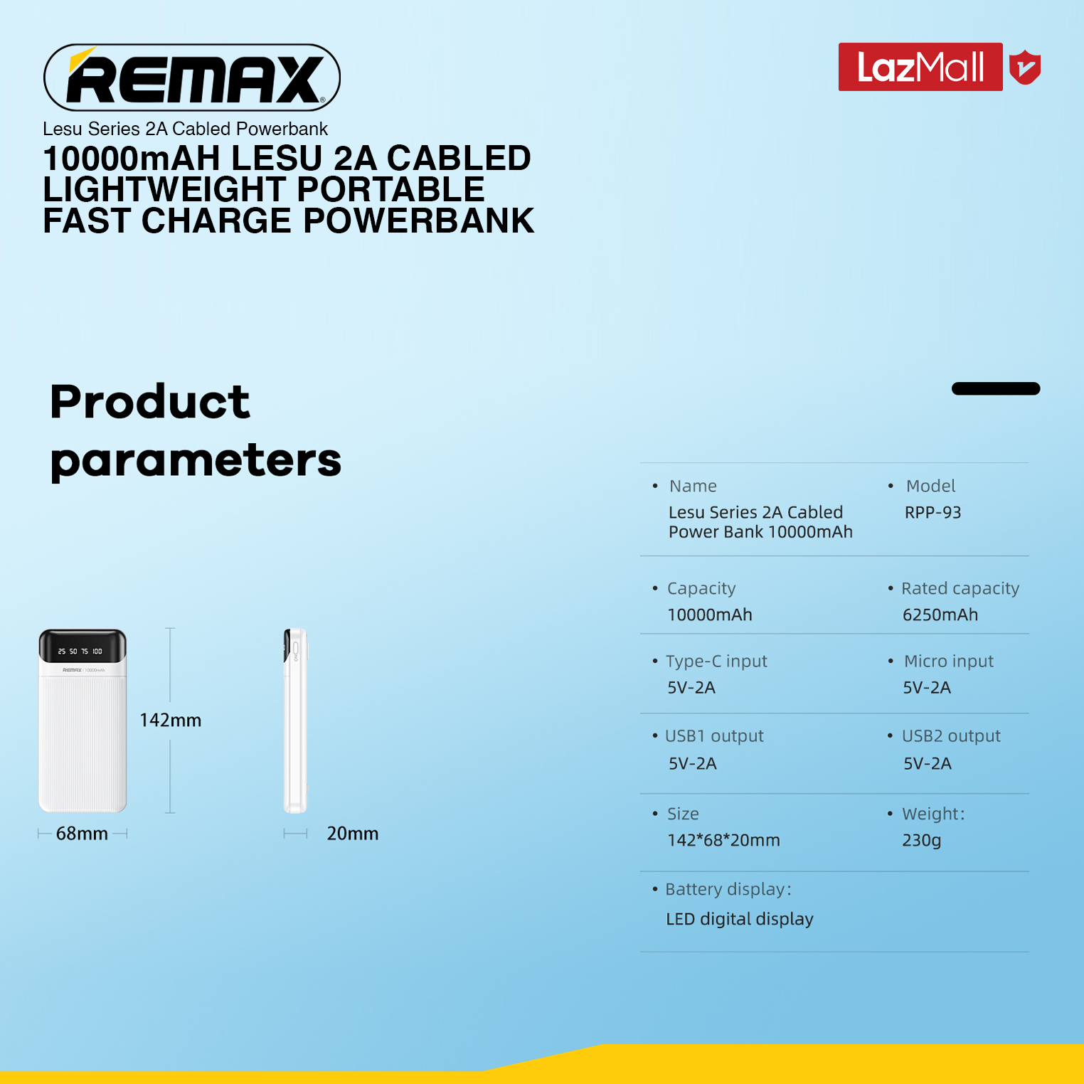 [Remax Energy] RPP-93 Lesu Portable 10000mAh 2A Fast Charge Power Bank with 3-In 1 Cable