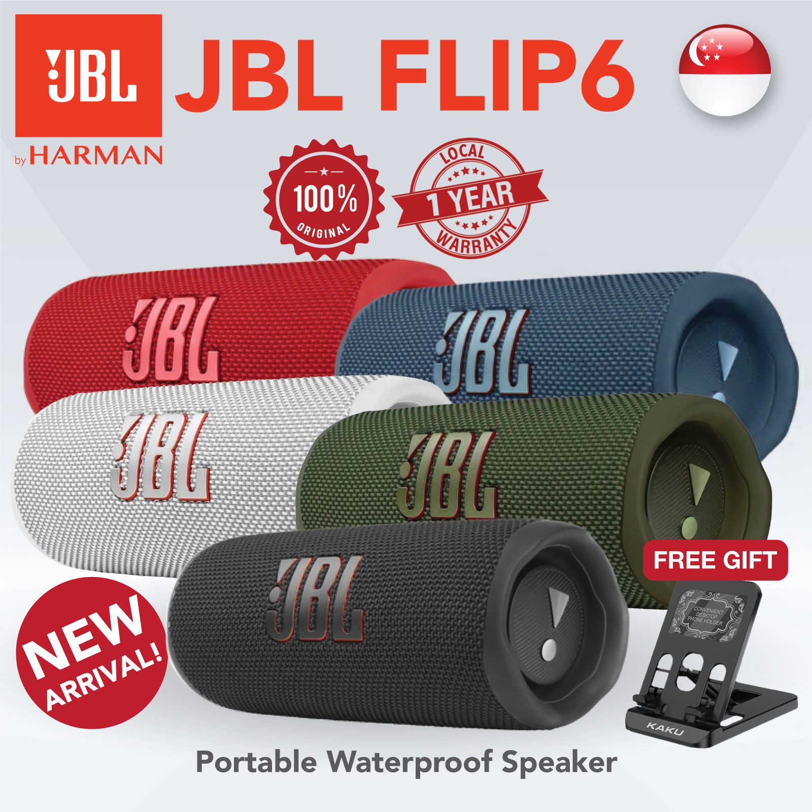 [SG] JBL Flip 6 Portable Bluetooth Speaker, Powerful Sound and Deep Bass, IPX67 Waterproof+Dustproof Speakers