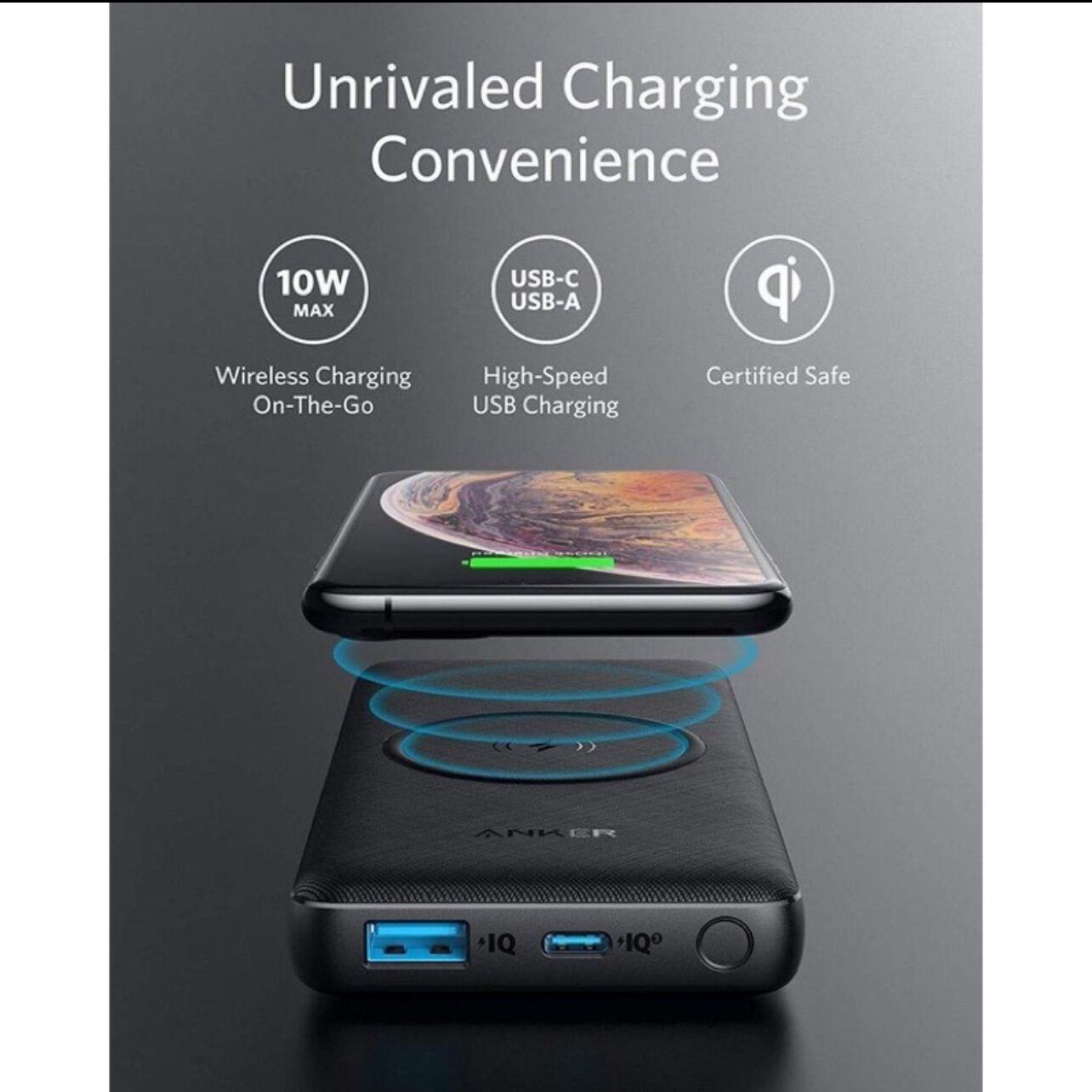 Anker PowerCore III Sense 10000mah Wireless PowerBank Portable Charger Qi-Certified 10W Wireless Charging & 18W USB-C