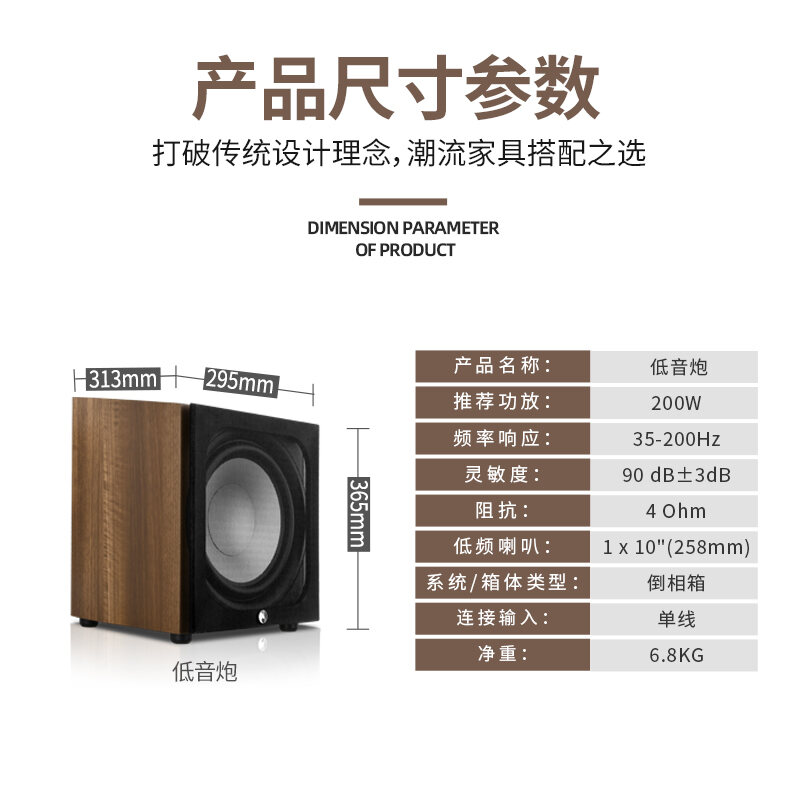 Shenshi M-W7 Passive Subwoofer 12-Inch Giant Super Bass Home Speaker Wooden High-Power Audio