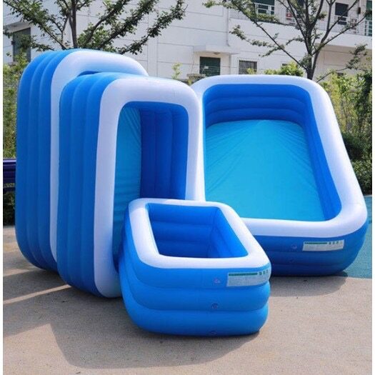 Product description:This product is suitable for new born and above, it is made off eco-friendly material.This product is adjustable, the user is able to adjust the height freely.This pool is design with safety valve so that it can be easy to inflate and deflate.The thickness matching for this swimming pool is the same as the thickness.After water is fill into it, the shape of the swimming pool will remain unchanged.This swimming pool is tough and durable, it is also cannot cut by a real knife.It is also built with three big valve so that user can adjust the height of the swimming pool by themselves.The fall point built on the bottom of the swimming pool can easily release water out of the swimming pool.Three layer design of this product is to prevent it from break and leakage.The water line inside the swimming pool have a top water line so that user can estimate the water level they want.Product features:External dimensions:- (L)150x(W) 110X (H)50cm (3kg)- (L)210 x (W)140 x (h) 65cm (5kg)- (L)262x(W)175x(H)60cm (6kg)- (L)305x(W)183x(H)60cm (8.2kg)-Multi purposes-showering, swimming, playing.-Eco friendly material-Thick, durable, & comfortable-Easy to carry & Store-Multi layer structure and valves-Material: eco-friendly PVCHow to play:-Guide your baby/kids to showering, swimming or playing inside this swimming pool-Firstly, use the electric pump to inflate the swimming pool.-User can adjust the height of the swimming pool when inflated according to their children height.-After user finish playing or swimming with their children, simply open the fall hole built below the swimming pool to easily send the water out of the swimming pool.Recommended for baby/kids. Adult supervision is need:** Suitable for how many people?1)(L)150x(W) 110X (H)50cm : 2-3 people2)(L) 210X (W)140x(H)65cm : 3-5 people3)(L) 260X (W) 170X (H)61cm : 5 -7 people4)(L)305x(W)180x(H)60cm : 7 - 8 people* Note:1. there will be 5-8cm differ due to manually measurement.2. color will be slightly differ due to different monitors or mobile screen showed.Parcel included:1PCs X swimming pool1PCs x electric pump (if selected pump)