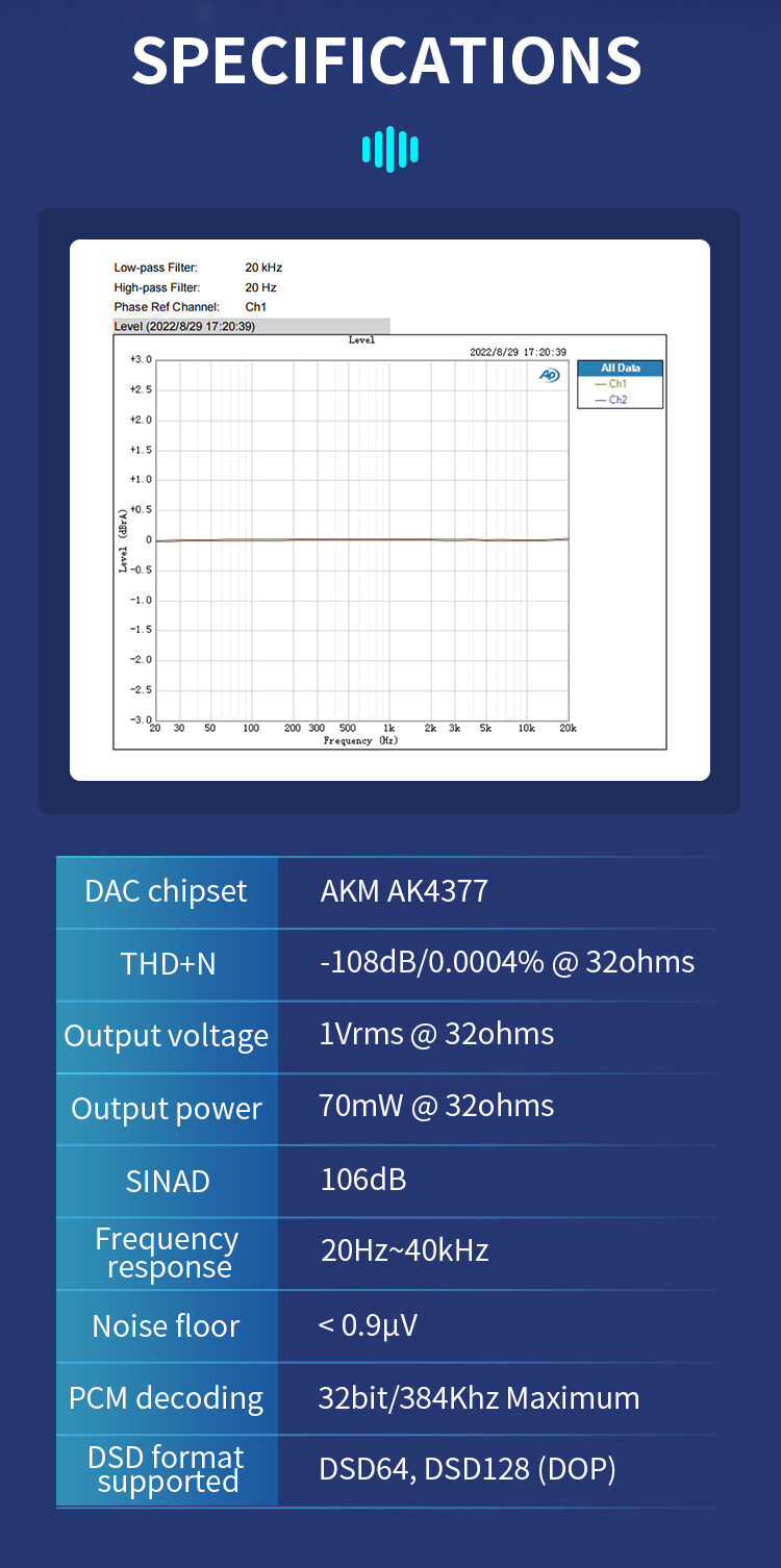 7HZ 71 Mobile DAC DONGLE AK4377 TYPE-C to 3.5mm Decoder Amplifier Supports DSD Native 128 and PCM 32bit/384kHz