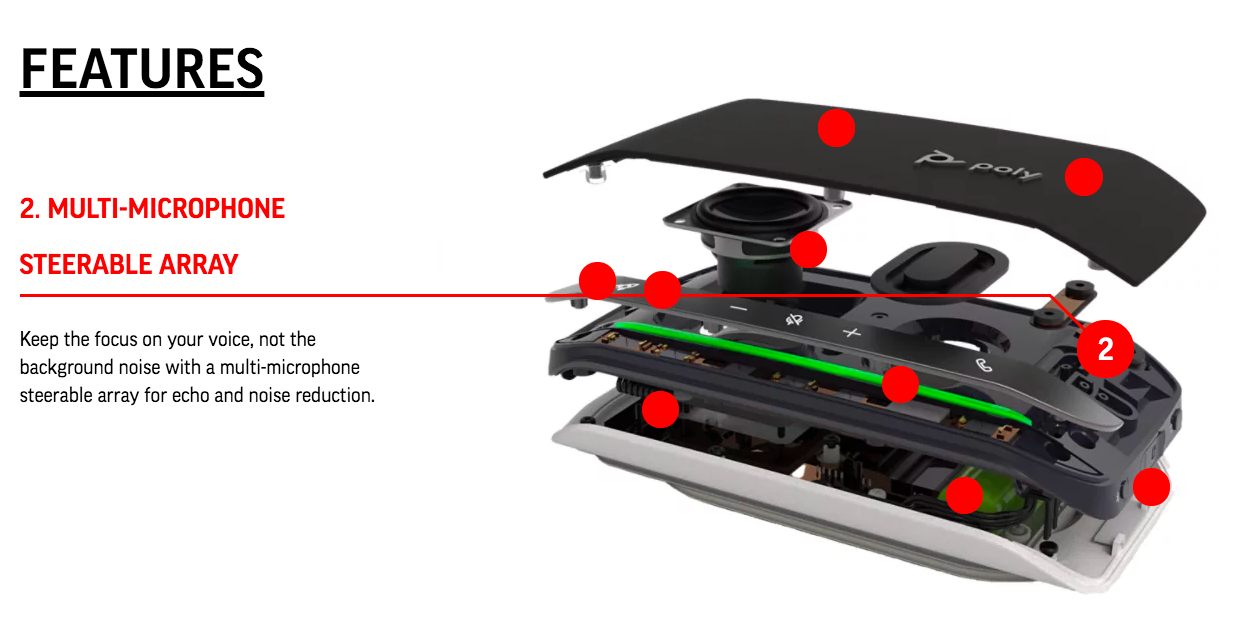 • Keep the focus on your voice, not the background noise with a multi-microphone steerable array for echo and noise reduction.