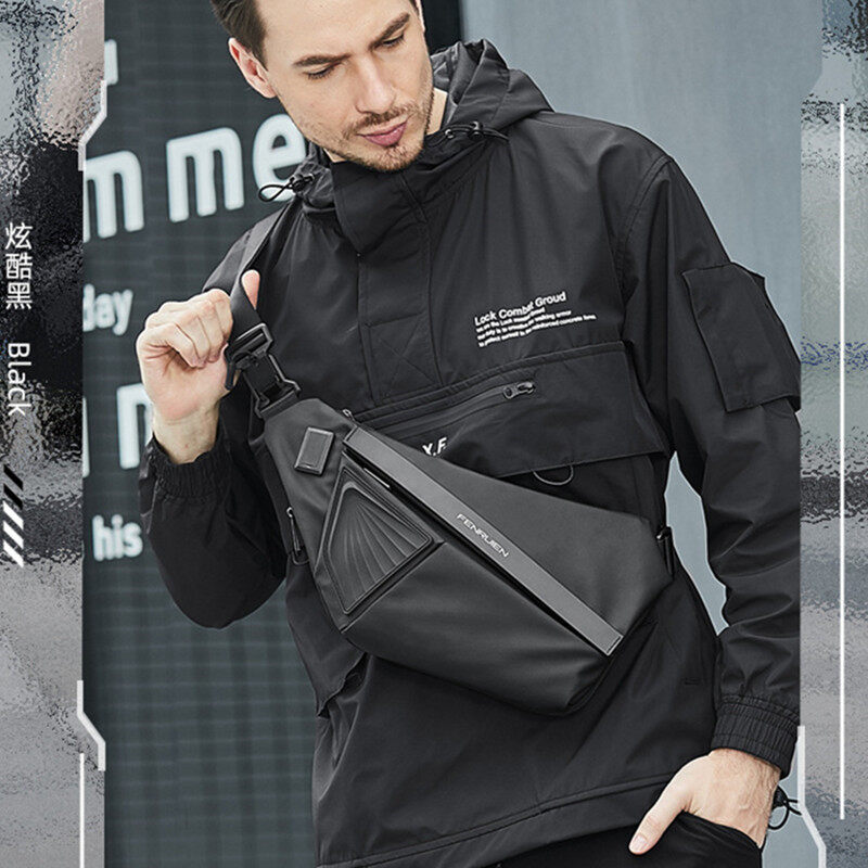 LOSELF- FENRUIEN Waterproof 8-inch Chest Bag Male Multifunction Small Storage Shoulder Bag Casual Men's Sling Messenger Bag Fashion Casual Crossbody Pouch Bags for Men
