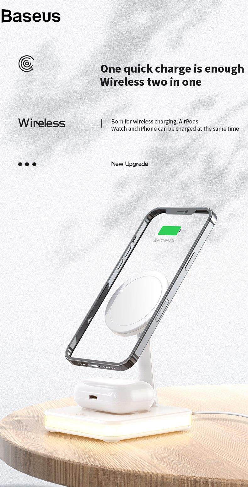 Baseus JJT-992 3 in 1 Magnetic Wireless Charger with USB Output for iPhone / AirPods LED Light Charging Base