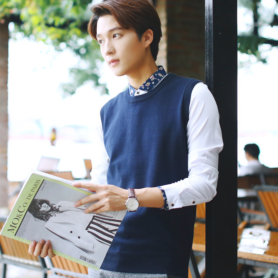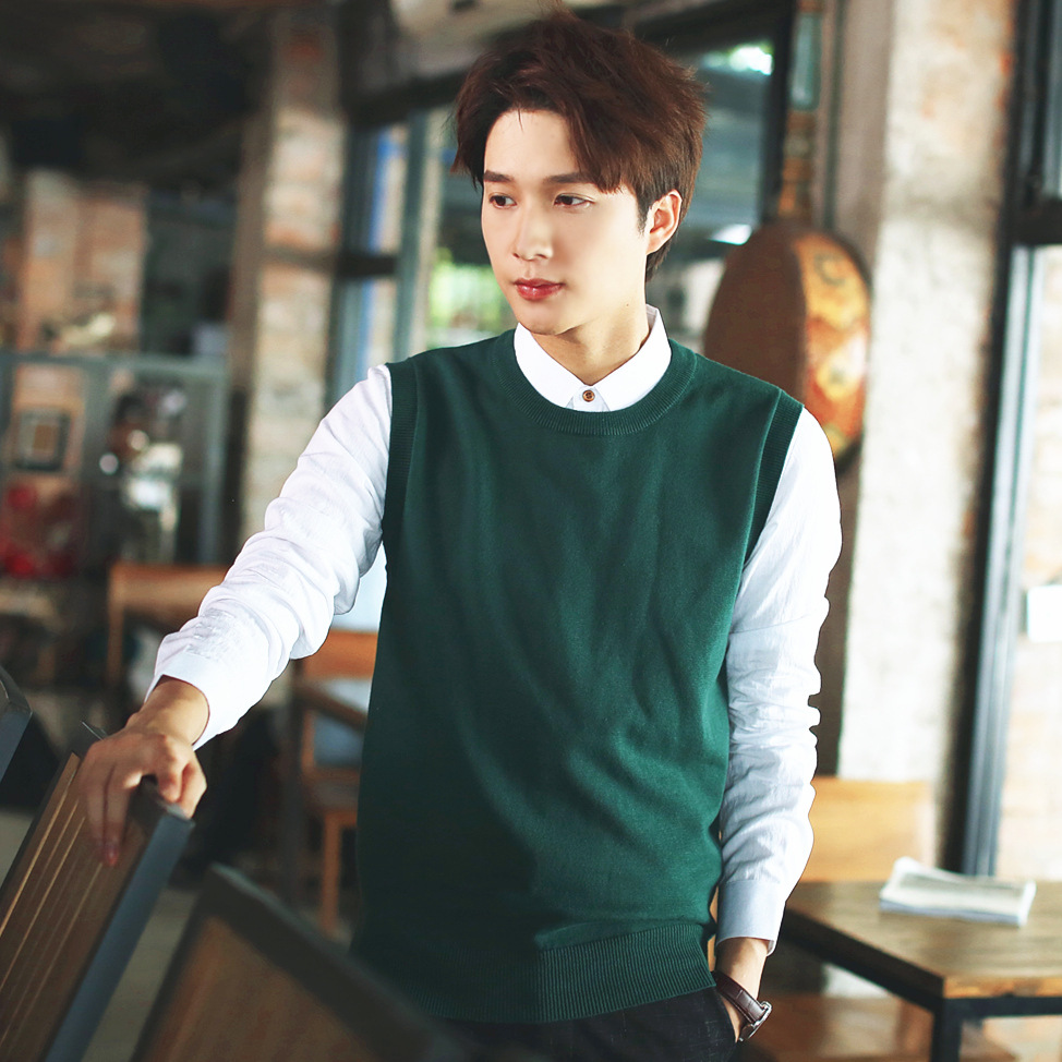 Round Neck Sleeveless Sweaters Men Stripe Good Quality Young Pullover Vest Solid Color Male Knitting Sweater Vests