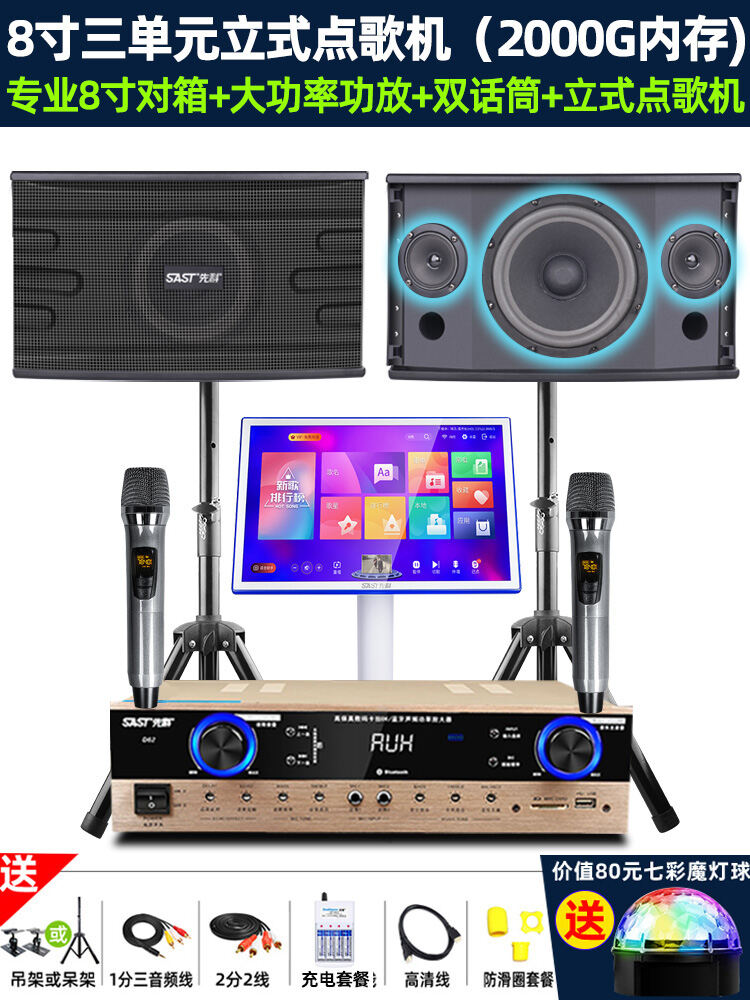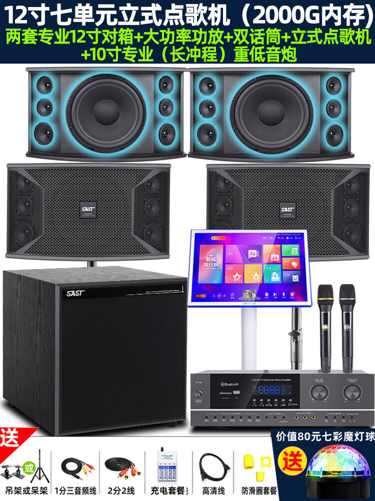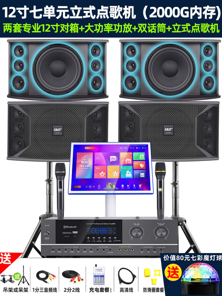 SAST Family KTV Audio Set Karaoke Machine Full Set Home Theater Living Room Karaoke Player All-in-One Professional Card Box Singing System Speaker Amplifier Microphone Special Equipment