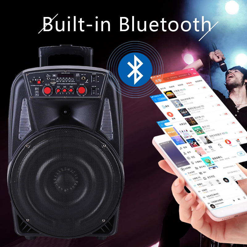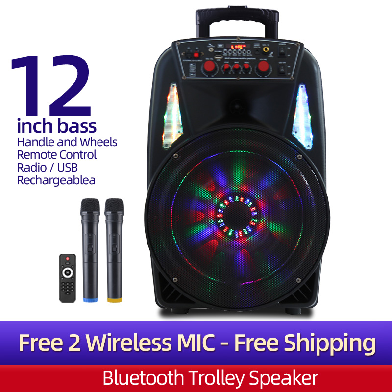12 Inch Portable Trolley Speaker Karaoke + Wireless Mic(Choose) Outdoor Bluetooth PA System Street Performances Square Dance Move Retractable Handle, Wheels,USB Audio Input