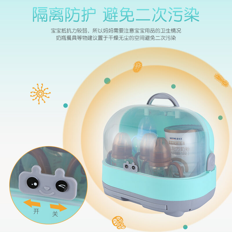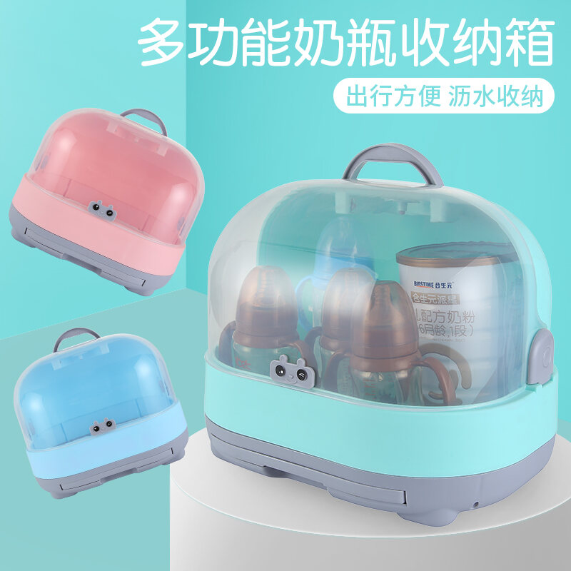 Baby Bottle Storage Box Portable Dustproof Draining Rack with Lid Baby Tableware Milk Powder Storage Box Shelf