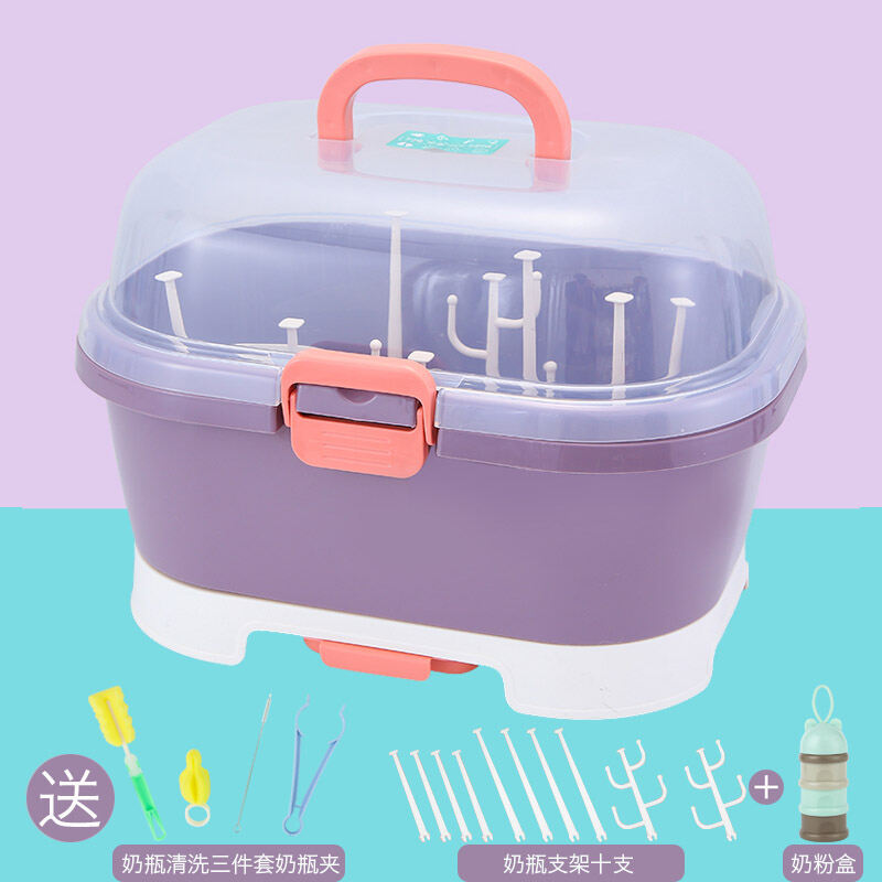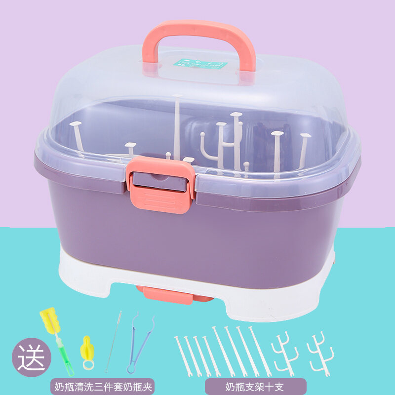 Baby Bottle Storage Box Portable Large Dust-Proof Drying Draining Rack Baby Tableware Organizing Dry Storage Box