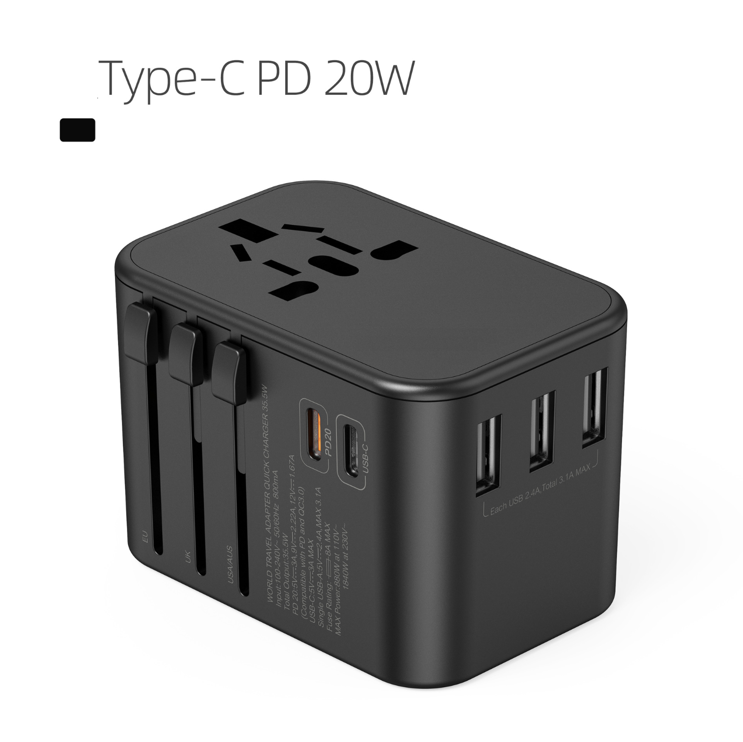 【Local Seller】Universal Travel Adapter with 3 USB Port + Dual Type-C Port Wall Charger Plug High-power charging universal conversion socket PD 20W PD AND QC3.0