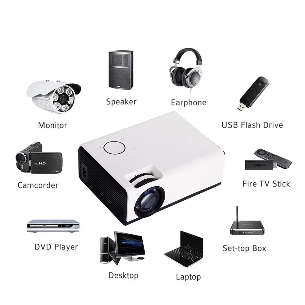 YBC Mini Portable LED Projector 1080P Home Cinema Theater Video Projectors USB for Mobile Phone