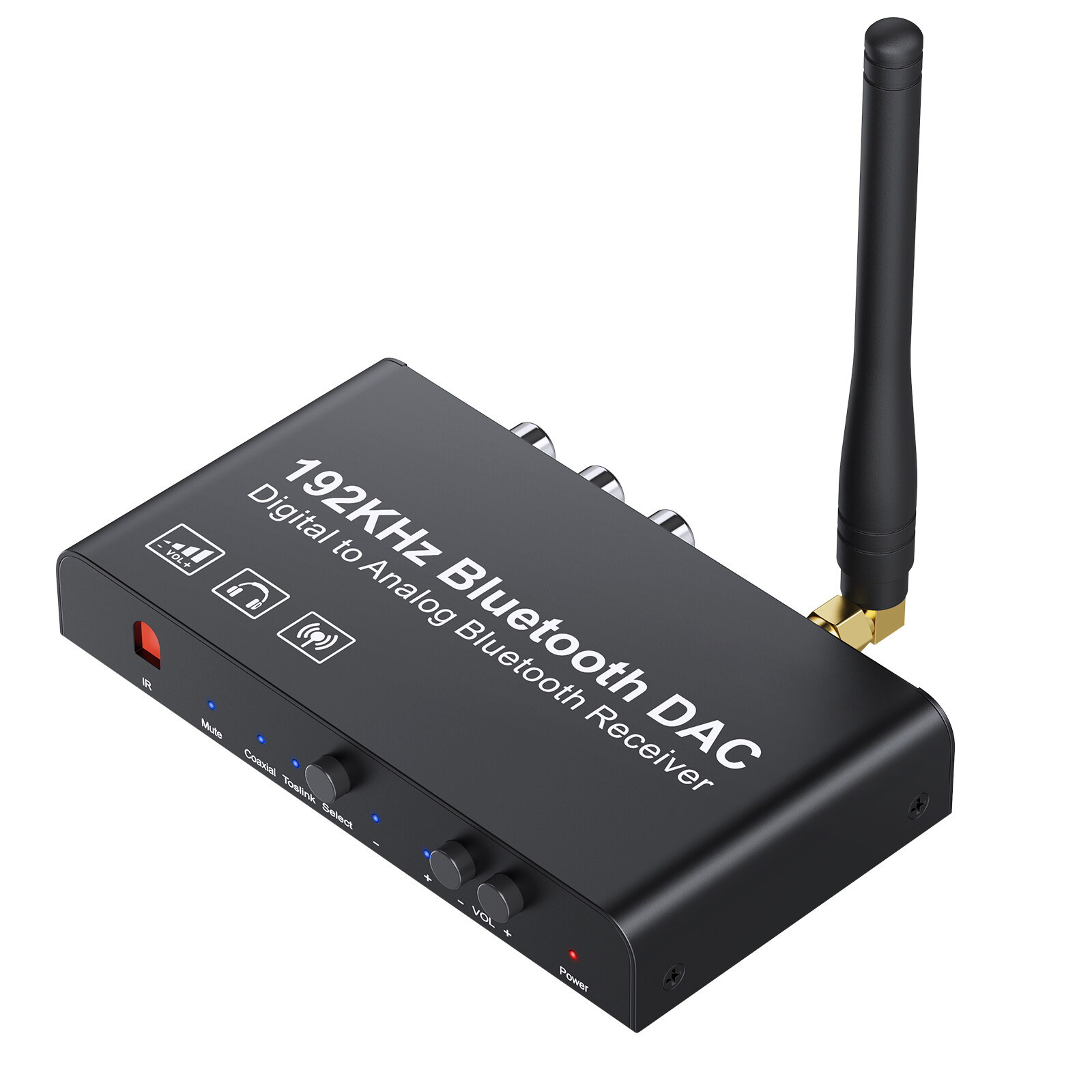 Digital to Analog Audio Converter is converts Coaxial or Toslink digital audio signals to analog L/R audio and available for connection to an external device. Built-in Bluetooth receiver module, supports mobile phone Bluetooth audio push, Bluetooth 5.0 lossless transmission technology.