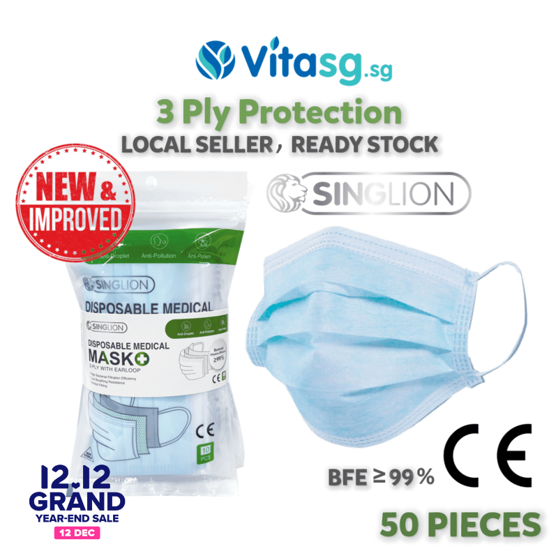 [Local Restock] Singlion 3 ply Disposable Surgical/Medical Face Mask Singlion Medical Mask (3-Ply With Earloop) - Disposable, Adaptable Nose Bar, High Filtration