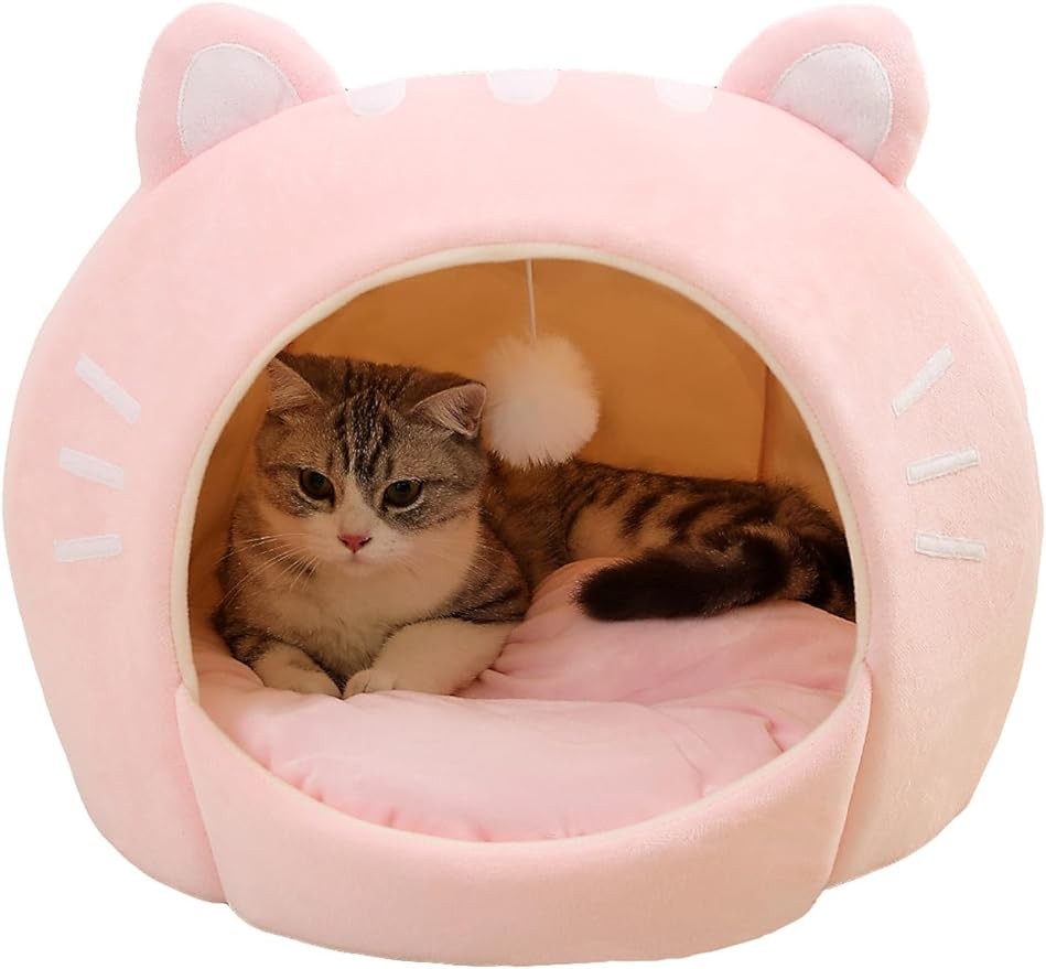 • The cute cartoon ear design with pompom adds much fun to your kitten's sleeping time. A wonderful present for your pet friends!